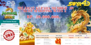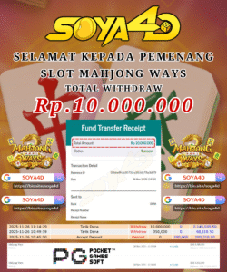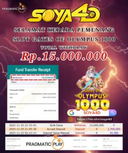 Selamat kepada User id : AD**** Telah berhasil mendapatkan kemenangan besar pada permainan SLOT WILD BOUNTY SHOWDOWN. Dengan kemenangan Sebesar Rp.20.000.000.- Setelah mengisi formulir withdraw dengan kurang waktu hanya 1 – 10 menit pihak SOYA4D sudah melakukan transfer kepada pemilik user id dan dana sudah masuk ke rekening id tersebut oleh pemenang. Bukti pembayaran yang kami berikan merupakan bukti pembayaran yang SAH / VALID yang langsung di dapatkan melalui tanda transfer transaksi berhasil dari Bank yang di tuju.