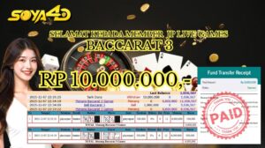 SOYA4D BUKTI JP LIVE GAMES BACCARAT 3 Rp.10.000.000.-LUNAS