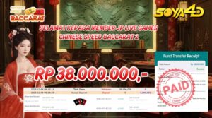 SOYA4D BUKTI JP LIVE GAME CHINESE SPEED BACCARAT 2 Rp.38.000.000.-LUNAS