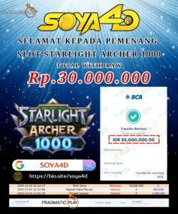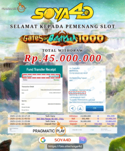 Selamat kepada User id : MAM*** Telah berhasil mendapatkan kemenangan besar pada permainan SLOT GATES OF OLYMPUS SUPER SCATTER . Dengan kemenangan Sebesar Rp.15.000.000.- Setelah mengisi formulir withdraw dengan kurang waktu hanya 1 – 10 menit pihak SOYA4D sudah melakukan transfer kepada pemilik user id dan dana sudah masuk ke rekening id tersebut oleh pemenang. Bukti pembayaran yang kami berikan merupakan bukti pembayaran yang SAH / VALID yang langsung di dapatkan melalui tanda transfer transaksi berhasil dari Bank yang di tuju.