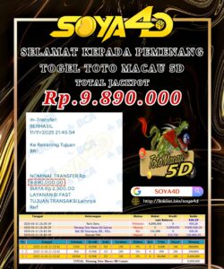 Selamat kepada User id : cop***** Telah berhasil mendapatkan kemenangan besar pada permainan TOGEL TOTO MACAU 5D Dengan kemenangan Sebesar Rp.9.890.000.-,Setelah mengisi formulir withdraw dengan kurung waktu hanya 1 – 10 menit pihak SOYA 4D sudah melakukan transfer kepada pemiliknya dan dana sudah masuk ke rekeNing id tersebut oleh pemenang. Bukti pembayaran yang kami berikan merupakan bukti pembayaran yang SAH / VALID yang langsung di dapatkan melalui tanda transfer transaksi berhasil dari Bank yang di tuju.