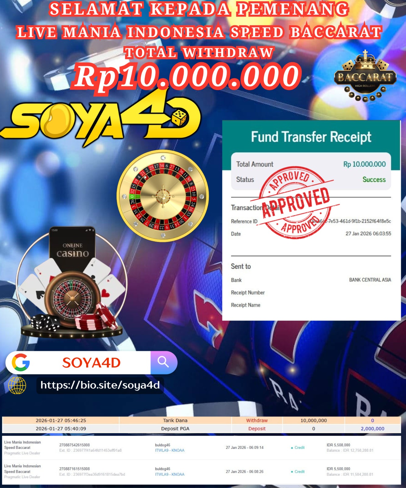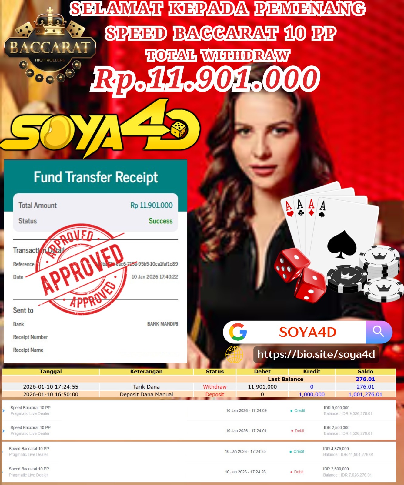 SOYA4D BUKTI JP LIVE GAMES MANIA INDONESIAN SPEED BACCARAT Rp. 21.438.000, -LUNAS