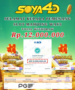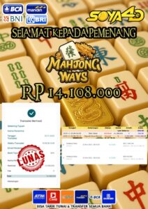 Selamat kepada User id : BA**** Telah berhasil mendapatkan kemenangan besar pada permainan SLOT MAHJONG WAYS. Dengan kemenangan Sebesar Rp.9.000.000.- Setelah mengisi formulir withdraw dengan kurang waktu hanya 1 – 10 menit pihak SOYA4D sudah melakukan transfer kepada pemilik user id dan dana sudah masuk ke rekening id tersebut oleh pemenang. Bukti pembayaran yang kami berikan merupakan bukti pembayaran yang SAH / VALID yang langsung di dapatkan melalui tanda transfer transaksi berhasil dari Bank yang di tuju.