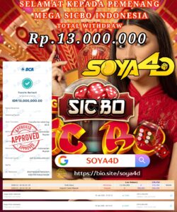 Masih ragu dengan SOYA4D bos ? Di mana bandar togel online sekarang yang terpercaya seperti SOYA 4D? Bandar yang mengirimkan kemenangan member tanpa bertele – tele. Jadi,,, tidak perlu khawatir pada situs SOYA 4D karena kemenangan anda berapapun akan dibayarakan hingga lunas kepada pemenang.