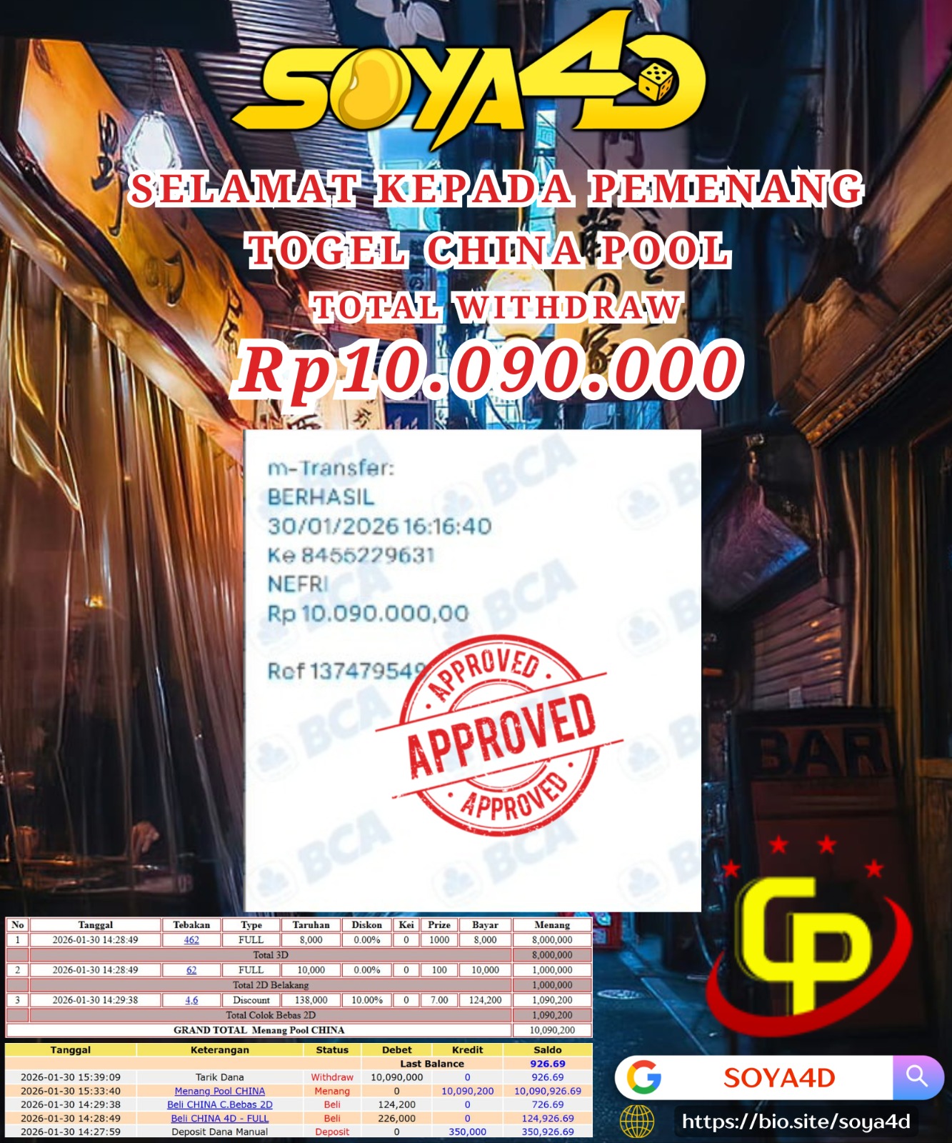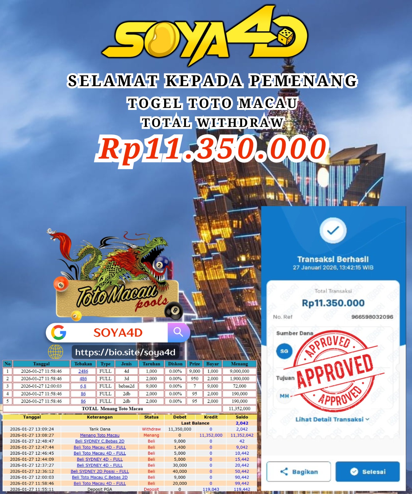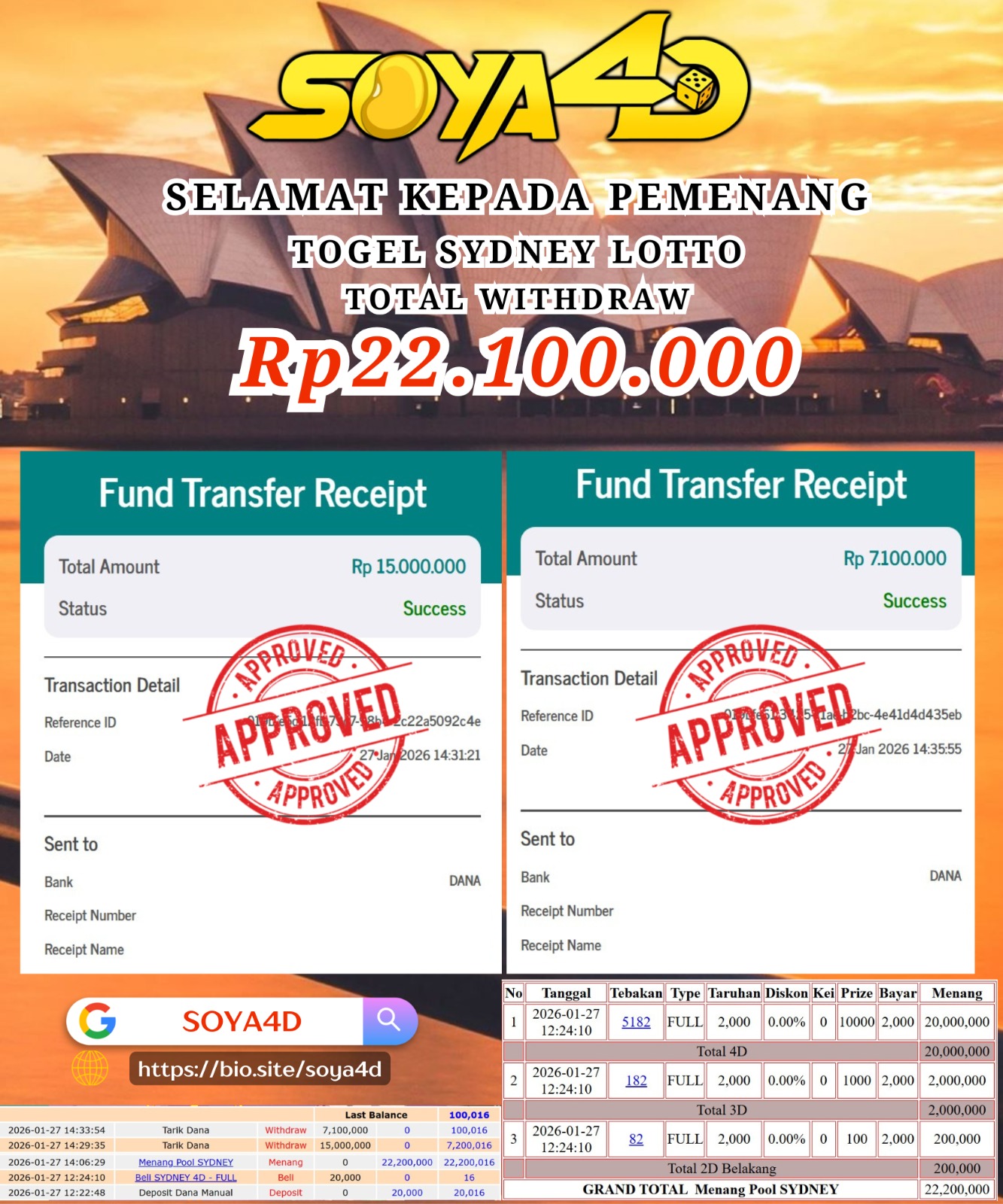 SOYA4D BUKTI JP SLOT OISHI DELIGHTS DAN TOGEL SYDNEY LOTTO Rp. 11.900.000, -LUNAS