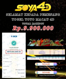 Masih ragu dengan SOYA4D bos ? Di mana bandar togel online sekarang yang terpercaya seperti SOYA 4D ? Bandar yang mengirimkan kemenangan member tanpa bertele – tele. Jadi…. tidak perlu khawatir pada situs SOYA 4D karena kemenangan anda berapapun akan dibayarakan hingga lunas kepada pemenang.