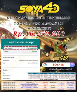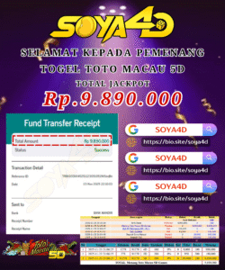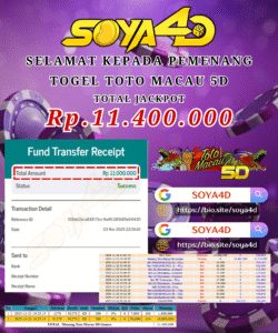 SOYA4D JACKPOT TOGEL TOTO MACAU 5D Rp.11.400.000,- LUNAS