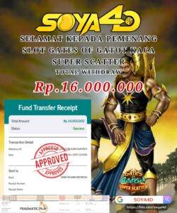 SOYA4D BUKTI JP SLOT GATES OF GATOT KACA SUPER SCATTER Rp.16.000.000.-LUNAS