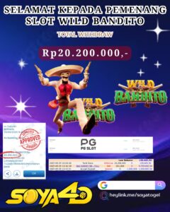 Selamat kepada User id : WER**** Telah berhasil mendapatkan kemenangan besar pada permainan SLOT WILD BANDITO Dengan kemenangan Sebesar Rp.20.200.000,-Setelah mengisi formulir withdraw dengan kurung waktu hanya 1 – 10 menit pihak SOYA 4D sudah melakukan transfer kepada pemiliknya dan dana sudah masuk ke rekeNing id tersebut oleh pemenang. Bukti pembayaran yang kami berikan merupakan bukti pembayaran yang SAH / VALID yang langsung di dapatkan melalui tanda transfer transaksi berhasil dari Bank yang di tuju.