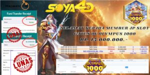 Selamat kepada User id : GII*** Telah berhasil mendapatkan kemenangan besar pada permainan LIVE GAMES ROULATTE Dengan kemenangan Sebesar Rp.10.800.000,-Setelah mengisi formulir withdraw dengan kurung waktu hanya 1 – 10 menit pihak SOYA 4D sudah melakukan transfer kepada pemiliknya dan dana sudah masuk ke rekeNing id tersebut oleh pemenang. Bukti pembayaran yang kami berikan merupakan bukti pembayaran yang SAH / VALID yang langsung di dapatkan melalui tanda transfer transaksi berhasil dari Bank yang di tuju.