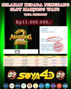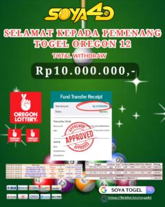Kami mengucapakan banyak Terima Kasih Kepada pemenang karena sudah mempercayakan kami sebagai Bandar Tepercaya yang membayar semua kemenangan member hingga lunas Masih ragu dengan SOYA 4D bos ? Di mana bandar togel online sekarang yang terpercaya seperti SOYA4D ? Bandar yang mengirimkan kemenangan member tanpa bertele – tele. Jadi…. tidak perlu khawatir pada situs SOYA4D karena kemenangan anda berapapun akan dibayarakan hingga lunas kepada pemenang.