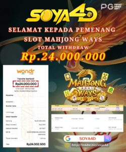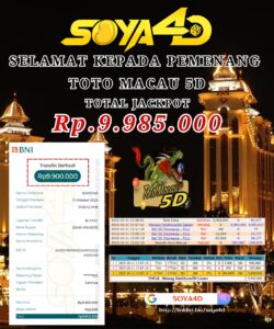 Kami mengucapakan banyak Terima Kasih Kepada pemenang karena sudah mempercayakan kami sebagai Bandar Tepercaya yang membayar semua kemenangan member hingga lunas Masih ragu dengan SOYA 4D bos ? Di mana bandar togel online sekarang yang terpercaya seperti SOYA4D ? Bandar yang mengirimkan kemenangan member tanpa bertele – tele. Jadi…. tidak perlu khawatir pada situs SOYA4D karena kemenangan anda berapapun akan dibayarakan hingga lunas kepada pemenang.