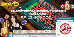 Selamat kepada User id : jef**** Telah berhasil mendapatkan kemenangan besar pada permainanLIVE GAME 12D Dengan kemenangan Sebesar Rp.12.400.000.-,Setelah mengisi formulir withdraw dengan kurung waktu hanya 1 – 10 menit pihak SOYA 4D sudah melakukan transfer kepada pemiliknya dan dana sudah masuk ke rekeNing id tersebut oleh pemenang. Bukti pembayaran yang kami berikan merupakan bukti pembayaran yang SAH / VALID yang langsung di dapatkan melalui tanda transfer transaksi berhasil dari Bank yang di tuju.