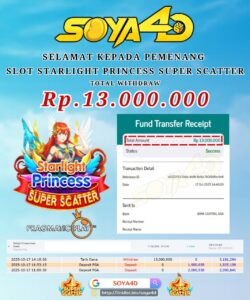 Selamat kepada User id : rud**** Telah berhasil mendapatkan kemenangan besar pada permainan SLOT STARLIGHT PRINCESS SUPER SCATTER Dengan kemenangan Sebesar Rp.13.000.000.-,Setelah mengisi formulir withdraw dengan kurung waktu hanya 1 – 10 menit pihak SOYA 4D sudah melakukan transfer kepada pemiliknya dan dana sudah masuk ke rekeNing id tersebut oleh pemenang. Bukti pembayaran yang kami berikan merupakan bukti pembayaran yang SAH / VALID yang langsung di dapatkan melalui tanda transfer transaksi berhasil dari Bank yang di tuju.
