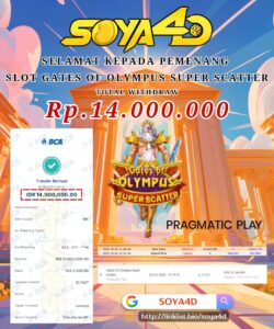 Selamat kepada User id : MUN**** Telah berhasil mendapatkan kemenangan besar pada permainan SLOT GATES OF OLYMPUS SUPER SCATTER Dengan kemenangan Sebesar Rp.14.000.000.-,Setelah mengisi formulir withdraw dengan kurung waktu hanya 1 – 10 menit pihak SOYA 4D sudah melakukan transfer kepada pemiliknya dan dana sudah masuk ke rekeNing id tersebut oleh pemenang. Bukti pembayaran yang kami berikan merupakan bukti pembayaran yang SAH / VALID yang langsung di dapatkan melalui tanda transfer transaksi berhasil dari Bank yang di tuju.