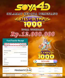 Selamat kepada User id : MEN**** Telah berhasil mendapatkan kemenangan besar pada permainan SLOT GATES OLYMPUS 1000 Dengan kemenangan Sebesar Rp.12.000.000.-,Setelah mengisi formulir withdraw dengan kurung waktu hanya 1 – 10 menit pihak SOYA 4D sudah melakukan transfer kepada pemiliknya dan dana sudah masuk ke rekeNing id tersebut oleh pemenang. Bukti pembayaran yang kami berikan merupakan bukti pembayaran yang SAH / VALID yang langsung di dapatkan melalui tanda transfer transaksi berhasil dari Bank yang di tuju.