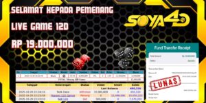 Selamat kepada User id : DER**** Telah berhasil mendapatkan kemenangan besar pada permainan LIVE GAME 12D Dengan kemenangan Sebesar Rp.19.000.000.-,Setelah mengisi formulir withdraw dengan kurung waktu hanya 1 – 10 menit pihak SOYA 4D sudah melakukan transfer kepada pemiliknya dan dana sudah masuk ke rekening id tersebut oleh pemenang. Bukti pembayaran yang kami berikan merupakan bukti pembayaran yang SAH / VALID yang langsung di dapatkan melalui tanda transfer transaksi berhasil dari Bank yang di tuju.