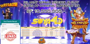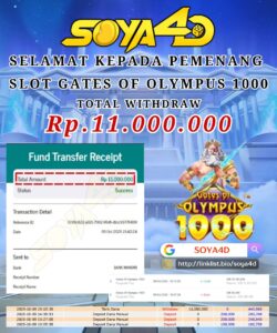 Selamat kepada User id : sft**** Telah berhasil mendapatkan kemenangan besar pada permainan SLOT GATES OF OLYMPUS SUPERSCATTEER Dengan kemenangan Sebesar Rp.10.000.000.-,Setelah mengisi formulir withdraw dengan kurung waktu hanya 1 – 10 menit pihak SOYA 4D sudah melakukan transfer kepada pemiliknya dan dana sudah masuk ke rekeNing id tersebut oleh pemenang. Bukti pembayaran yang kami berikan merupakan bukti pembayaran yang SAH / VALID yang langsung di dapatkan melalui tanda transfer transaksi berhasil dari Bank yang di tuju.