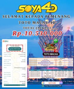 Kami mengucapakan banyak Terima Kasih Kepada pemenang karena sudah mempercayakan kami sebagai Bandar Tepercaya yang membayar semua kemenangan member hingga lunas Masih ragu dengan SOYA 4D bos ? Di mana bandar togel online sekarang yang terpercaya seperti SOYA4D ? Bandar yang mengirimkan kemenangan member tanpa bertele – tele. Jadi…. tidak perlu khawatir pada situs SOYA4D karena kemenangan anda berapapun akan dibayarakan hingga lunas kepada pemenang.