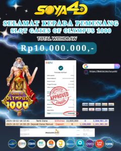 Selamat kepada User id : REW***** Telah berhasil mendapatkan kemenangan besar pada permainan SLOT SAPCEMAN Dengan kemenangan Sebesar Rp.10.079.000,- Setelah mengisi formulir withdraw dengan kurung waktu hanya 1 – 10 menit pihak SOYA 4D sudah melakukan transfer kepada pemiliknya dan dana sudah masuk ke rekeNing id tersebut oleh pemenang. Bukti pembayaran yang kami berikan merupakan bukti pembayaran yang SAH / VALID yang langsung di dapatkan melalui tanda transfer transaksi berhasil dari Bank yang di tuju.