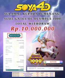 Selamat kepada User id : UF**** Telah berhasil mendapatkan kemenangan besar pada permainan SLOT GATES OF OLYMPUS 1000 Dengan kemenangan Sebesar Rp.10.000.000.- Setelah mengisi formulir withdraw dengan kurung waktu hanya 1 – 10 menit pihak SOYA 4D sudah melakukan transfer kepada pemiliknya dan dana sudah masuk ke rekeNing id tersebut oleh pemenang. Bukti pembayaran yang kami berikan merupakan bukti pembayaran yang SAH / VALID yang langsung di dapatkan melalui tanda transfer transaksi berhasil dari Bank yang di tuju.