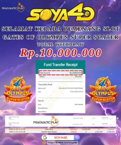 Selamat kepada User id : CUD**** Telah berhasil mendapatkan kemenangan besar pada permainan SLOT GATES OF OLYMPUS SUPER SCATTER Dengan kemenangan Sebesar Rp.10.000.000.-, Setelah mengisi formulir withdraw dengan kurung waktu hanya 1 – 10 menit pihak SOYA 4D sudah melakukan transfer kepada pemiliknya dan dana sudah masuk ke rekeNing id tersebut oleh pemenang. Bukti pembayaran yang kami berikan merupakan bukti pembayaran yang SAH / VALID yang langsung di dapatkan melalui tanda transfer transaksi berhasil dari Bank yang di tuju.