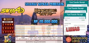 Selamat kepada User id : BRO**** Telah berhasil mendapatkan kemenangan besar pada permainan HONGKONG LOTTO  Dengan kemenangan Sebesar Rp.20.000.000.-,Setelah mengisi formulir withdraw dengan kurung waktu hanya 1 – 10 menit pihak SOYA 4D sudah melakukan transfer kepada pemiliknya dan dana sudah masuk ke rekeNing id tersebut oleh pemenang. Bukti pembayaran yang kami berikan merupakan bukti pembayaran yang SAH / VALID yang langsung di dapatkan melalui tanda transfer transaksi berhasil dari Bank yang di tuju.