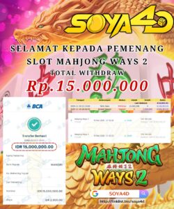 Selamat kepada User id : BRO***** Telah berhasil mendapatkan kemenangan besar pada permainan SLOT MAHJONG WAYS 2  Dengan kemenangan Sebesar Rp.15.000.000.-,Setelah mengisi formulir withdraw dengan kurung waktu hanya 1 – 10 menit pihak SOYA 4D sudah melakukan transfer kepada pemiliknya dan dana sudah masuk ke rekeNing id tersebut oleh pemenang. Bukti pembayaran yang kami berikan merupakan bukti pembayaran yang SAH / VALID yang langsung di dapatkan melalui tanda transfer transaksi berhasil dari Bank yang di tuju.