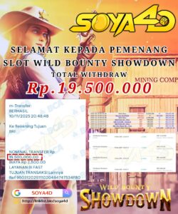 Selamat kepada User id : BIL***** Telah berhasil mendapatkan kemenangan besar pada permainan SLOT WILD BOUNTY SHOWDOWN Dengan kemenangan Sebesar Rp.19.500.000.-,Setelah mengisi formulir withdraw dengan kurung waktu hanya 1 – 10 menit pihak SOYA 4D sudah melakukan transfer kepada pemiliknya dan dana sudah masuk ke rekeNing id tersebut oleh pemenang. Bukti pembayaran yang kami berikan merupakan bukti pembayaran yang SAH / VALID yang langsung di dapatkan melalui tanda transfer transaksi berhasil dari Bank yang di tuju.