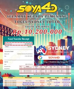 Selamat kepada User id : BEO***** Telah berhasil mendapatkan kemenangan besar pada permainan TOGEL TAIWAN POOL Dengan kemenangan Sebesar Rp.17.434.500.-,Setelah mengisi formulir withdraw dengan kurung waktu hanya 1 – 10 menit pihak SOYA 4D sudah melakukan transfer kepada pemiliknya dan dana sudah masuk ke rekeNing id tersebut oleh pemenang. Bukti pembayaran yang kami berikan merupakan bukti pembayaran yang SAH / VALID yang langsung di dapatkan melalui tanda transfer transaksi berhasil dari Bank yang di tuju.