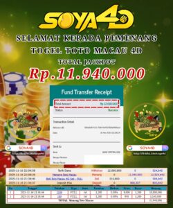 Kami mengucapakan banyak Terima Kasih Kepada pemenang karena sudah mempercayakan kami sebagai Bandar Tepercaya yang membayar semua kemenangan member hingga lunas Masih ragu dengan SOYA 4D bos ? Di mana bandar togel online sekarang yang terpercaya seperti SOYA4D ? Bandar yang mengirimkan kemenangan member tanpa bertele – tele. Jadi…. tidak perlu khawatir pada situs SOYA4D karena kemenangan anda berapapun akan dibayarakan hingga lunas kepada pemenang.
