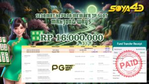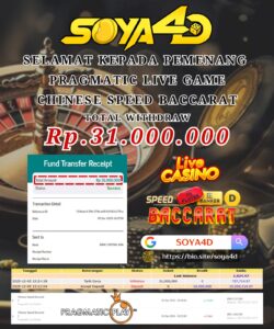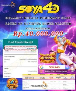Selamat kepada User id : Tom***** Telah berhasil mendapatkan kemenangan besar pada permainan PEMENANG SLOT GATES OF OLYMPUS SUPER SCETTER . Dengan kemenangan Sebesar Rp.10.500.000.- Setelah mengisi formulir withdraw dengan kurang waktu hanya 1 – 10 menit pihak SOYA4D sudah melakukan transfer kepada pemilik user id dan dana sudah masuk ke rekening id tersebut oleh pemenang. Bukti pembayaran yang kami berikan merupakan bukti pembayaran yang SAH / VALID yang langsung di dapatkan melalui tanda transfer transaksi berhasil dari Bank yang di tuju.