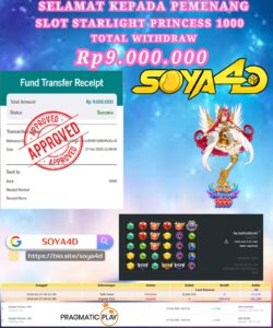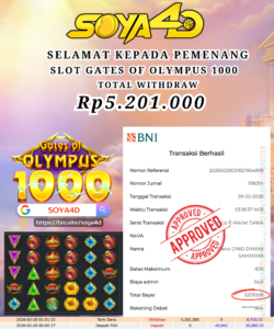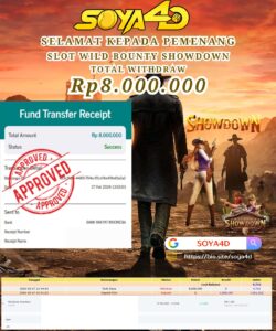 Selamat kepada Userid : ARSAKA**** Telah berhasil mendapatkan kemenangan besar pada permainan SLOT WILD BOUNTY SHOWDOWN . Dengan kemenangan Sebesar Rp. 14.549.000.-. Setelah mengisi formulir withdraw dengan kurang waktu hanya 1 – 10 menit pihak SOYA4D sudah melakukan transfer kepada pemilik user id. Dan dana sudah masuk ke rekening id tersebut oleh pemenang. Bukti pembayaran yang kami berikan merupakan bukti pembayaran yang SAH / VALID yang langsung di dapatkan melalui tanda transfer transaksi berhasil dari Bank yang di tuju. Kami juga mengucapakan banyak Terima Kasih Kepada pemenang karena sudah mempercayakan kami sebagai Bandar Tepercaya yang membayar semua kemenangan member hingga lunas.
