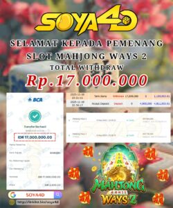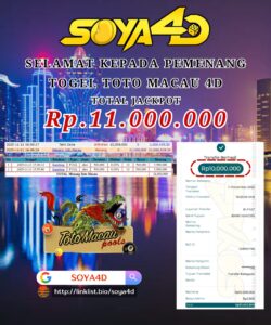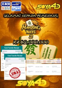Kami mengucapakan banyak Terima Kasih Kepada pemenang karena sudah mempercayakan kami sebagai Bandar Tepercaya yang membayar semua kemenangan member hingga lunas Masih ragu dengan SOYA 4D bos ? Di mana bandar togel online sekarang yang terpercaya seperti SOYA4D ? Bandar yang mengirimkan kemenangan member tanpa bertele – tele. Jadi…. tidak perlu khawatir pada situs SOYA4D karena kemenangan anda berapapun akan dibayarakan hingga lunas kepada pemenang.