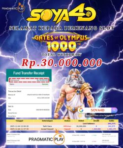 Selamat kepada User id : YO***** Telah berhasil mendapatkan kemenangan besar pada permainan PEMENANG SLOT GATES OF OLYMPUS 1000 . Dengan kemenangan Sebesar Rp.5.000.000.- Setelah mengisi formulir withdraw dengan kurang waktu hanya 1 – 10 menit pihak SOYA4D sudah melakukan transfer kepada pemilik user id dan dana sudah masuk ke rekening id tersebut oleh pemenang. Bukti pembayaran yang kami berikan merupakan bukti pembayaran yang SAH / VALID yang langsung di dapatkan melalui tanda transfer transaksi berhasil dari Bank yang di tuju.
