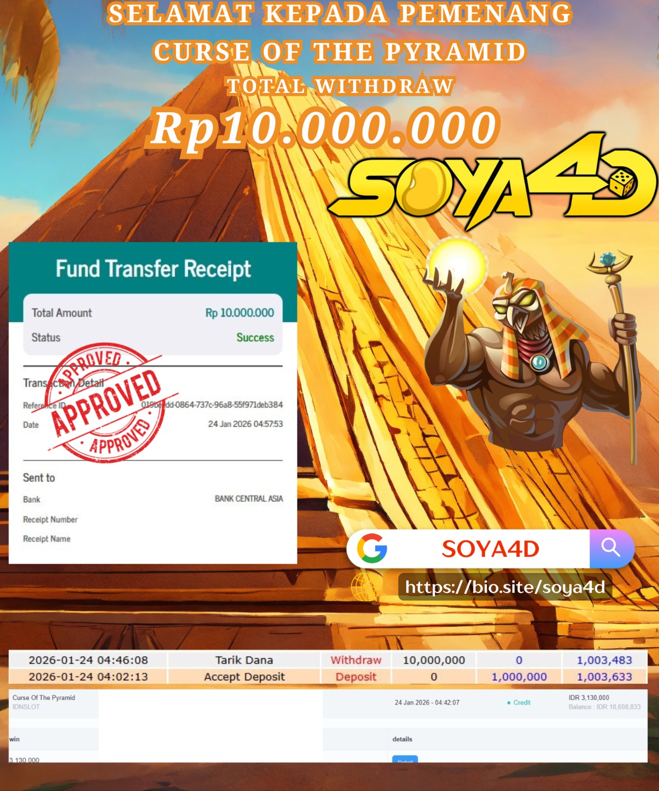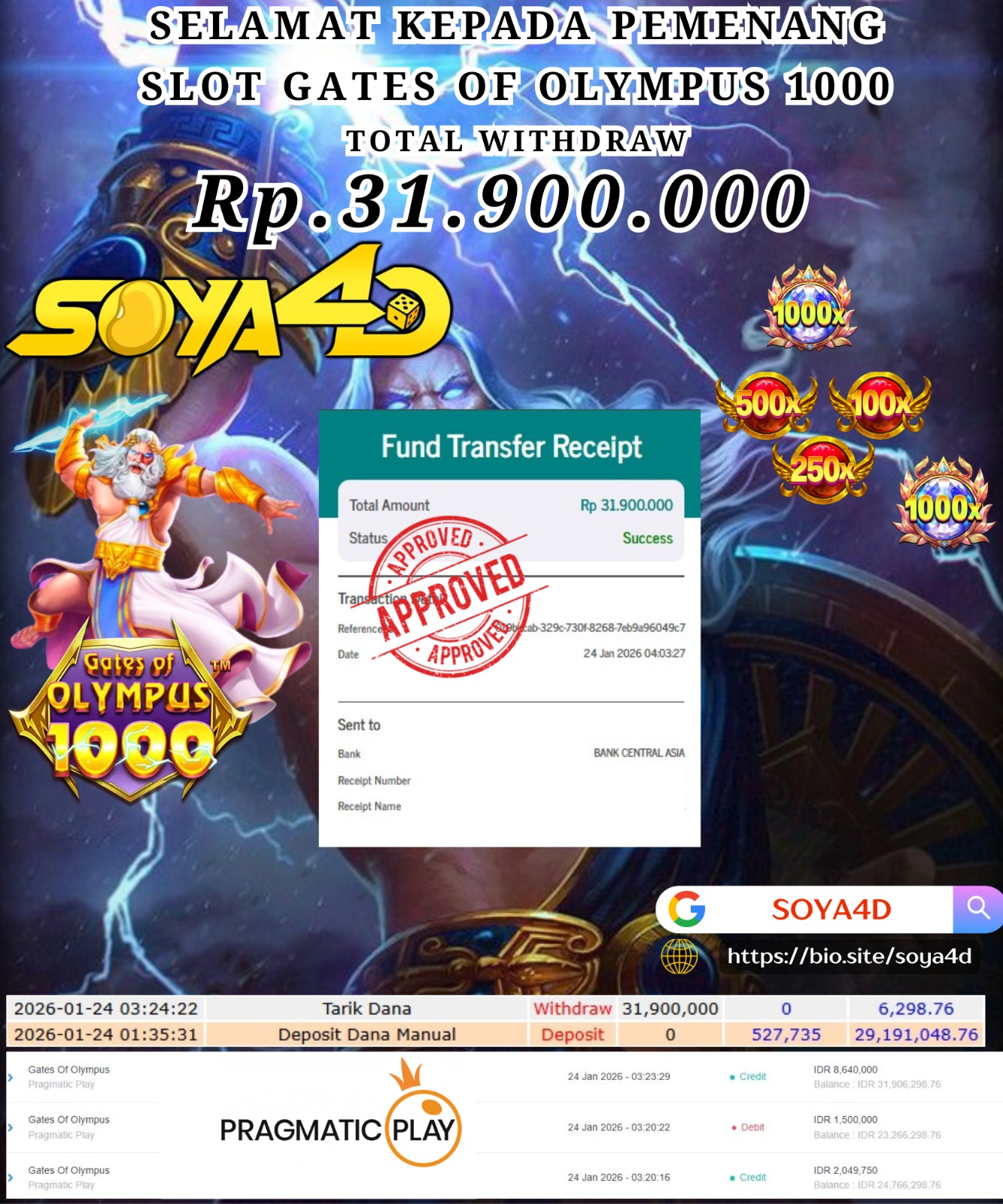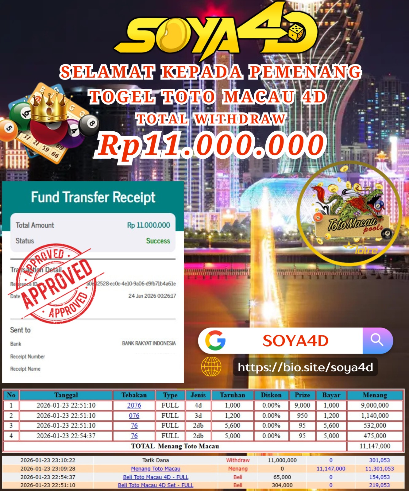 Masih ragu dengan SOYA4D bos ? Di mana bandar togel online sekarang yang terpercaya seperti SOYA 4D? Bandar yang mengirimkan kemenangan member tanpa bertele – tele. Jadi,,, tidak perlu khawatir pada situs SOYA 4D karena kemenangan anda berapapun akan dibayarakan hingga lunas kepada pemenang.