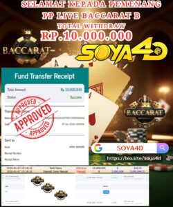 Selamat kepada Userid : Sen***** Telah berhasil mendapatkan kemenangan besar pada permainan PP LIVE BACCARAT B . Dengan kemenangan Sebesar Rp. 10.000.000.-. Setelah mengisi formulir withdraw dengan kurang waktu hanya 1 – 10 menit pihak SOYA4D sudah melakukan transfer kepada pemilik user id. Dan dana sudah masuk ke rekening id tersebut oleh pemenang. Bukti pembayaran yang kami berikan merupakan bukti pembayaran yang SAH / VALID yang langsung di dapatkan melalui tanda transfer transaksi berhasil dari Bank yang di tuju. Kami juga mengucapakan banyak Terima Kasih Kepada pemenang karena sudah mempercayakan kami sebagai Bandar Tepercaya yang membayar semua kemenangan member hingga lunas.