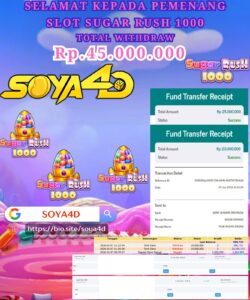 Selamat kepada Userid : Put***** Telah berhasil mendapatkan kemenangan besar pada permainan SLOT SUGAR RUSH 1000 . Dengan kemenangan Sebesar Rp. 45.000.000.-. Setelah mengisi formulir withdraw dengan kurang waktu hanya 1 – 10 menit pihak SOYA4D sudah melakukan transfer kepada pemilik user id. Dan dana sudah masuk ke rekening id tersebut oleh pemenang. Bukti pembayaran yang kami berikan merupakan bukti pembayaran yang SAH / VALID yang langsung di dapatkan melalui tanda transfer transaksi berhasil dari Bank yang di tuju. Kami juga mengucapakan banyak Terima Kasih Kepada pemenang karena sudah mempercayakan kami sebagai Bandar Tepercaya yang membayar semua kemenangan member hingga lunas.
