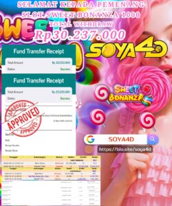 Selamat kepada Userid : Man***** Telah berhasil mendapatkan kemenangan besar pada permainan SLOT SWEET BONANZA 1000 . Dengan kemenangan Sebesar Rp. 30.237.000.-. Setelah mengisi formulir withdraw dengan kurang waktu hanya 1 – 10 menit pihak SOYA4D sudah melakukan transfer kepada pemilik user id. Dan dana sudah masuk ke rekening id tersebut oleh pemenang. Bukti pembayaran yang kami berikan merupakan bukti pembayaran yang SAH / VALID yang langsung di dapatkan melalui tanda transfer transaksi berhasil dari Bank yang di tuju. Kami juga mengucapakan banyak Terima Kasih Kepada pemenang karena sudah mempercayakan kami sebagai Bandar Tepercaya yang membayar semua kemenangan member hingga lunas.