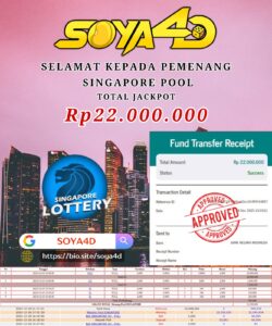 Selamat kepada Userid : Aul**** Telah berhasil mendapatkan kemenangan besar pada permainan TOGEL SINGAPORE POOL . Dengan kemenangan Sebesar Rp.22.000.000.-. Setelah mengisi formulir withdraw dengan kurang waktu hanya 1 – 10 menit pihak SOYA4D sudah melakukan transfer kepada pemilik user id. Dan dana sudah masuk ke rekening id tersebut oleh pemenang. Bukti pembayaran yang kami berikan merupakan bukti pembayaran yang SAH / VALID yang langsung di dapatkan melalui tanda transfer transaksi berhasil dari Bank yang di tuju.