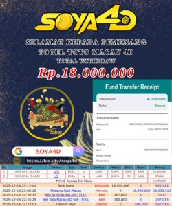 Selamat kepada Userid : IND**** Telah berhasil mendapatkan kemenangan besar pada permainan TOGEL TOTO MACAU . Dengan kemenangan Sebesar Rp.18.000.000.-. Setelah mengisi formulir withdraw dengan kurang waktu hanya 1 – 10 menit pihak SOYA4D  sudah melakukan transfer kepada pemilik user id. Dan dana sudah masuk ke rekening id tersebut oleh pemenang. Bukti pembayaran yang kami berikan merupakan bukti pembayaran yang SAH / VALID yang langsung di dapatkan melalui tanda transfer transaksi berhasil dari Bank yang di tuju.